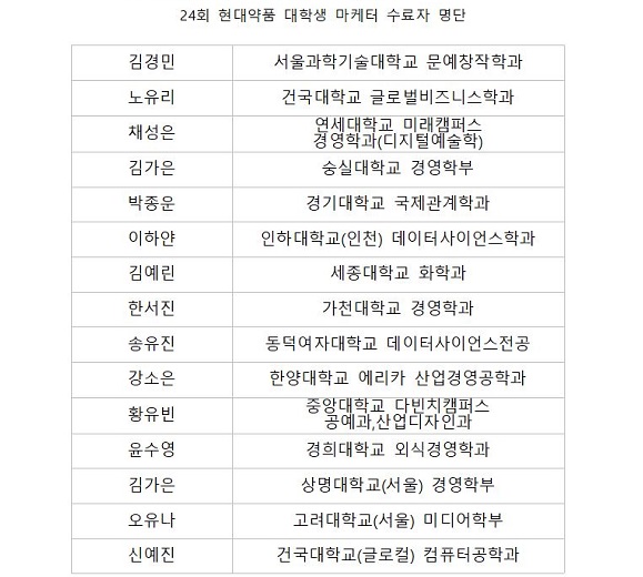 Çö´ë¾àǰÀº Áö³ 2008³âºÎÅÍ ²ÙÁØÈ÷ ´ëÇлýµé°ú ÇÔ²² ¸¶ÄÉÆÃ È°µ¿À» ÆîÄ¡°í ÀÖ´Ù. ƯÈ÷ 23ȸ¿¡ À̾î À̹ø 24ȸ ¿ª½Ã Á¦¾à¾÷°è ÃÖÃÊ·Î ÀΰøÁö´É(AI)À» Ȱ¿ëÇÑ ´ëÇлý ¸¶ÄÉÆÃ ¼Æ÷ÅÍÁî·Î ÁÖ¸ñÀ» ¹ÞÀº ¹Ù ÀÖ´Ù.