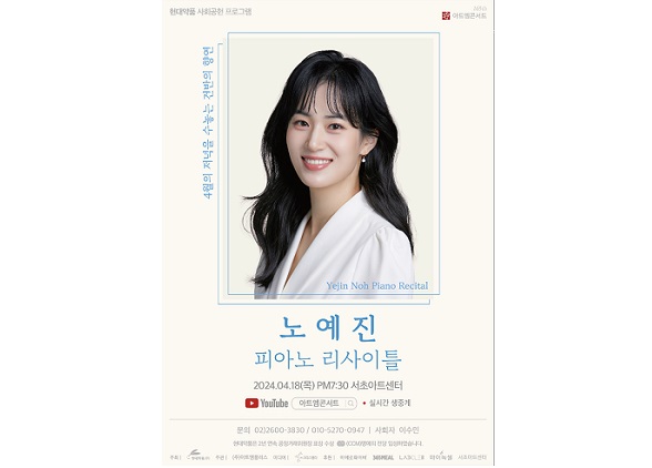 Çö´ë¾àǰÀÌ Á¦154ȸ ¾ÆÆ®¿¥ÄܼƮ ÇǾƴϽºÆ® ³ë¿¹Áø ¸®»çÀÌÆ² ¡®4¿ùÀÇ Àú³áÀ» ¼ö³õ´Â °Ç¹ÝÀÇ Ç⿬¡¯À» ¿À´Â 18ÀÏ ¿ÀÈÄ 7½Ã 30ºÐ ¼ÃÊ¾ÆÆ®¼¾ÅÍ¿¡¼ °³ÃÖÇÑ´Ù.